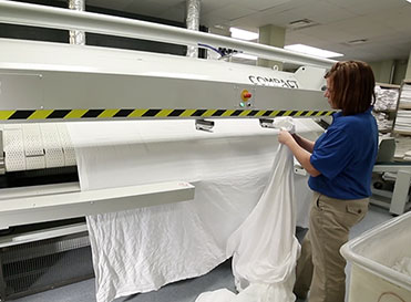 Is laundry consuming too much time and money? Is your facility constantly replacing worn out sheets and linens? By equipping your on-premise laundry with high-speed washer-extractors, your laundry operation will slash utility and labor costs, and ensure a crisp, five-star finish. Some of our washers reach more than 300 G-force extract speeds—doubling that of most other front-load washers. Thus, they cut dry time by as much as 50 percent. A shorter dry-time also reduces wear and tear on linens and sheets. The automatic chemical injection process also eliminates the need to manually add chemicals and cuts down on human error, overuse and the price of detergent. Flatwork ironers are also available to finish tablecloths, napkins and linens. Linens can be fed directly from the washer to the ironer–without dryer conditioning, which further cuts labor and utility costs and boosts laundry production.